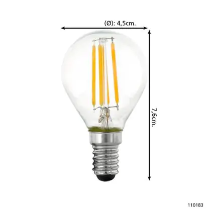 Eglo LED Kugel E14 Fadenlampe Klar 4.5W 470lm - 827 | Dimmbar - Ersatz Für 40W