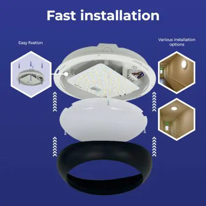 LED-Wand- und Deckenleuchte Pro V2 Weiß 12/16/20W 2400lm - 830-840-865 CCT | 325mm - IP65 - Bewegungs- und Lichtsensor + Ring Schwarz