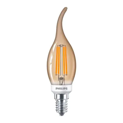 Philips Classic LED Kerze E14 Gebogene Spitze Fadenlampe Gold 5W 350lm - 822 Extra Warmweiß | Dimmbar - Ersatz für 40W