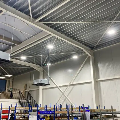 Le Highbay LED V4.0 Puissance Réglable 100-120-150-200W 34000lm 90D - 840/852/865 CCT | IP65 - 0-10V Dimmable - Remplacement 520W est un puissant luminaire qui est très souvent utilisé pour l’éclairage industriel. Ce luminaire suspendu propage un puissant flux lumineux de 34000 Lm et offrant un excellent rendu de couleurs par rapport aux luminaires traditionnels. Cet high-bay LED est capable de résister aux différentes températures extrêmes que l’on peut retrouver dans les hangars, entrepôts ou autres halls industriels. La technologie LED Intégré sur ce luminaire permet de faire d’importantes économies d’énergie. En effet, l’high-bay propose une puissance de 200W pour un équivalent de W pour les appareils classiques et dispose d’une durée de vie pouvant aller jusqu’à 140000 heures.