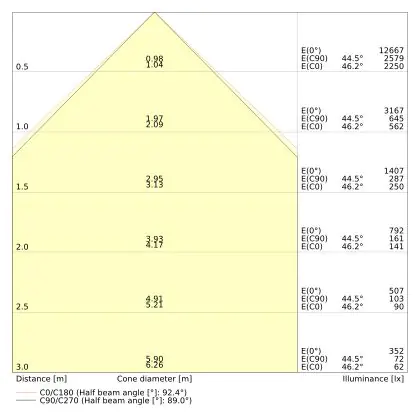 Le code couleur se compose de l'indice de rendu des couleurs (IRC) et de la température de couleur (Kelvin). Le premier chiffre indique le rendu des couleurs (1 = très mauvais rendu des couleurs, 9 = meilleure authenticité des couleurs). Le deuxième et troisième chiffre indiquent la température de la couleur. Exemple : Le code couleur "830" indique que la lampe a un bon rendu des couleurs (8) et une couleur de lumière blanche chaude (30 = 3000K). |