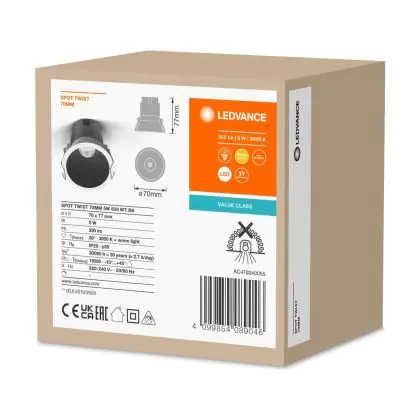 | Nom du fabricant | LED SPOT RECESS TWIST PRO 70mm 5W 3000K White Black | |
