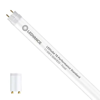 Ce tube LED Ledvance tube LED 120cm | 3300K 11.6W - Performance est l’un des produits les plus éconergétiques en remplacement des tubes T8 classiques. Avec ce tube LED vous êtes donc assuré de sa qualité. Avec une puissance de seulement 11.6 W, ce tube LED a la même intensité lumineuse qu’un tube classique qui consomme 36 W.