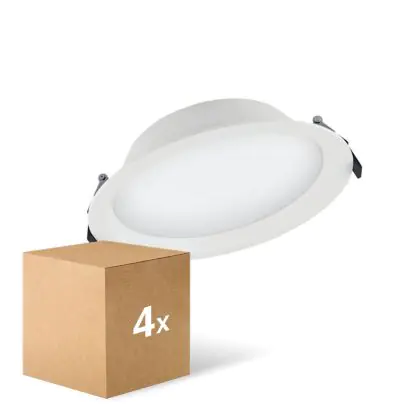 Les spots LED encastrables (aussi appelés Downlights) sont des solution éco-énergétiques permettant de remplacer les spots classiques équipés de technologie à fluorescence. Ce downlight Lot 4x Ledvance Spot Encastrable LED Alu DN200 25W 2370lm 100D - 840 | 215mm - IP44 est conçu pour remplacer un spot classique de 2x26. La consommation de ce downlight LED est considérablement plus faible qu’un luminaire classique, à savoir, seulement 25 watts. Une économie d’énergie sans compromettre la qualité de la lumière. Le flux lumineux est de 2370 lumens. La lumière de ce downlight LED est diffusé à 100 degrés et offre un bon rendu des couleurs. La durée de vie moyenne de ce luminaire LED est de 50000 heures.