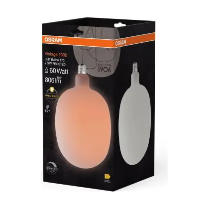 Cette ampoule Osram Vintage 1906 LED E27 Special Filament Dépolie 7.3W 806lm - 827 | Dimmable - Remplacement 60W avec son efficacité lumineuse de lumen par watt vous permettra de profiter d’un éclairage de qualité. Avec sa durée de vie de 15000 heures, vous n’aurez pas à vous soucier de son remplacement avant quelques années.